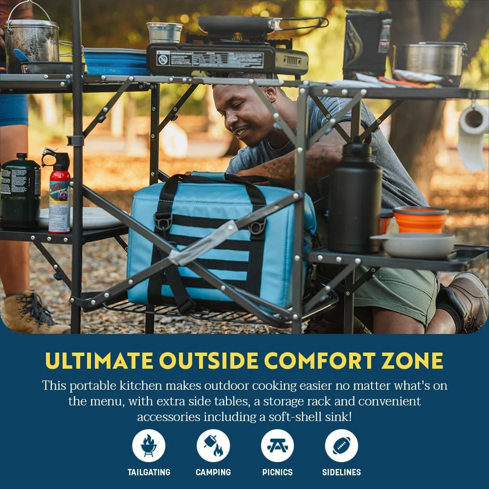 Преносна преклопна табела за кампување со алуминиум, направете ги вашите кампови патувања епски со мастер -станицата за готвење од GCI Outdoor. Оваа преносна кујна е преполна со карактеристики (вклучувајќи мијалник со мека школка!), Со што тоа е совршен додаток на вашите најважни работи или кампување.