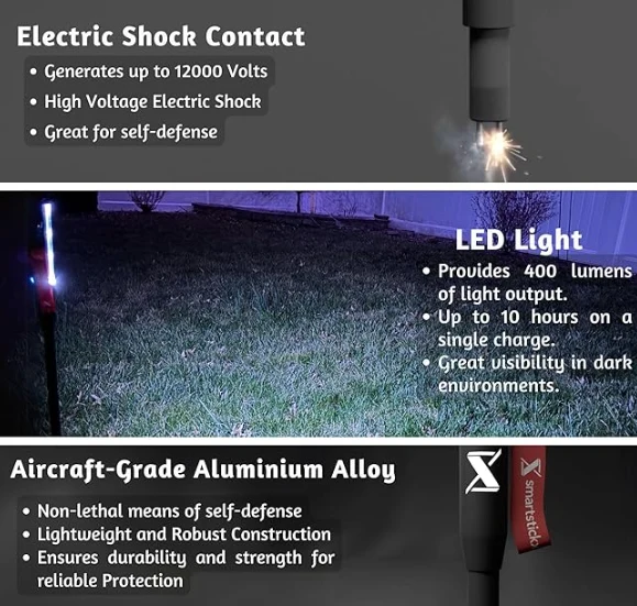 Два режими на располагање на ЛЕР: светло бело светло совршено за кампување и црвен/сино блиц за итни ситуации, што го прави ефективна алатка за ноќни стапчиња за самоодбрана.