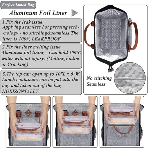 Поставата за ладење на алуминиумска фолија Алуминиумската ладилник е 100% доказ за истекување, лесен за чистење и нема да се стопи лесно. Најлонската ткаенина е отпорна на вода, а горниот патент е водоотпорен. Функциите на водоотпорни и изолирани од оваа торба за ручек се одлични.