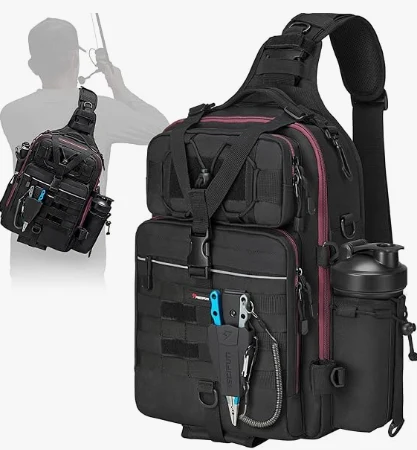 Одвојувањето на лентите за рамо го олеснува користењето на оваа торба како вреќа за прашка, ранец, чанта, торба за градите, торба за риболов или торба за патувања. Со две ленти за шипки да ги држат вашите шипки, главната должина на лентата може да се прошири до 51,2 '', додека здружениот каиш може да се прошири на 36,2 ''