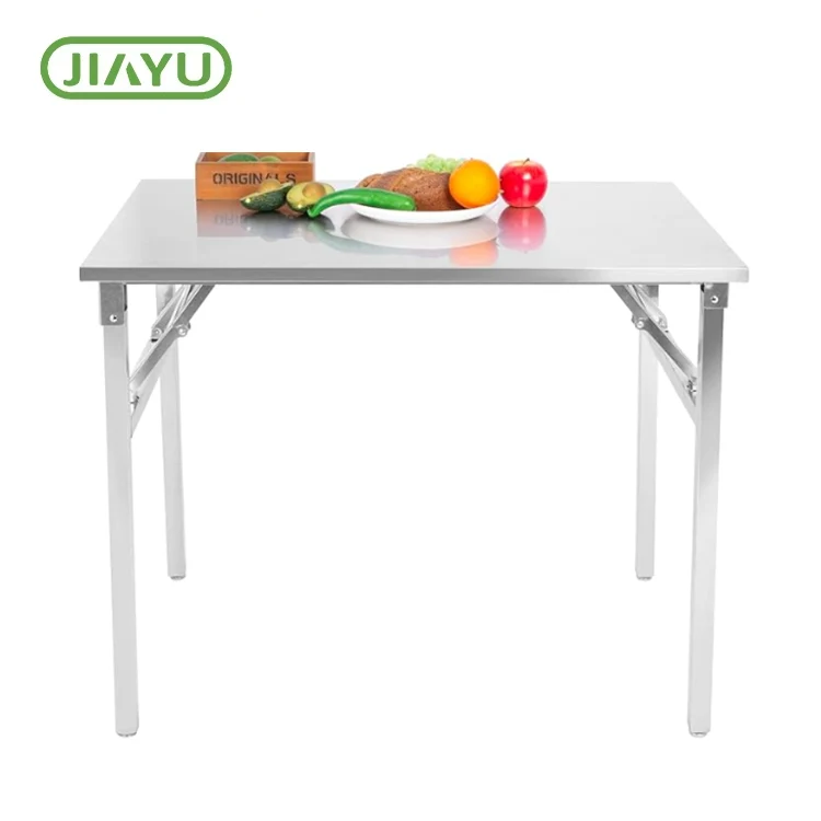 Преносна преклопна табела за кампување од не'рѓосувачки челик, мала маса за преклопување. Задебелена countertop од не'рѓосувачки челик за да се спречи лесно да се деформација и да се полира мазна без никаков остар раб