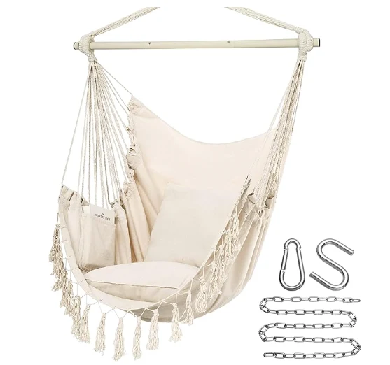 Шиење виси падобран хамак.есно виси го во секое време, каде било. Само пронајдете гранка, зрак или рамка за хамак, одличен стол за замав за надвор или внатре. Тој е многу погоден за употреба во спални соби, како декор на простории, балкони, дворови и градини. Ако ви треба враќање, не ја отстранувајте ознаката од столчето за замав