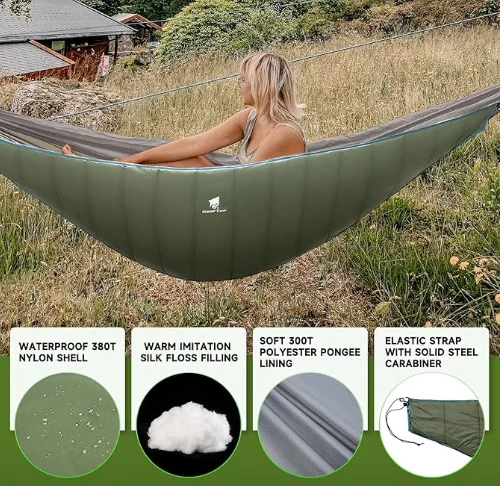 Патување кампување хамак под ватенка за кампување - 20д 380T водоотпорна најлонска карирана ткаенина школка со мека постава од полиестер Полиестер Полиестер; Имитација на полнење со свилен конец, кожа - пријателска, удобна