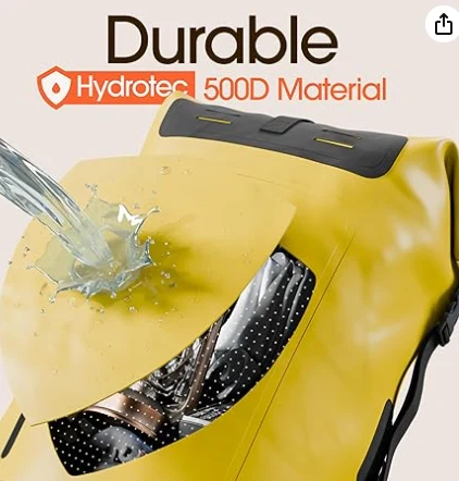 Водоотпорна торба со сув ранец. Голем патент за прскање од надворешната страна за брзо грабнување и предмети, и вграден патент џеб, преграда за мрежи и клуч прстен од внатрешноста. Погодните Д-прстени прикачени и на лентите за рамото и на системот за мол, кои ги опфаќаат двете, обезбедуваат точки на сидро на заклучување на додека пловеат или велосипедизам.
