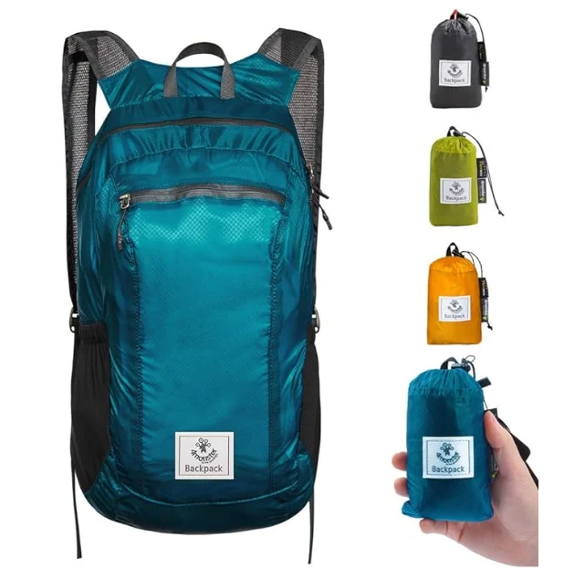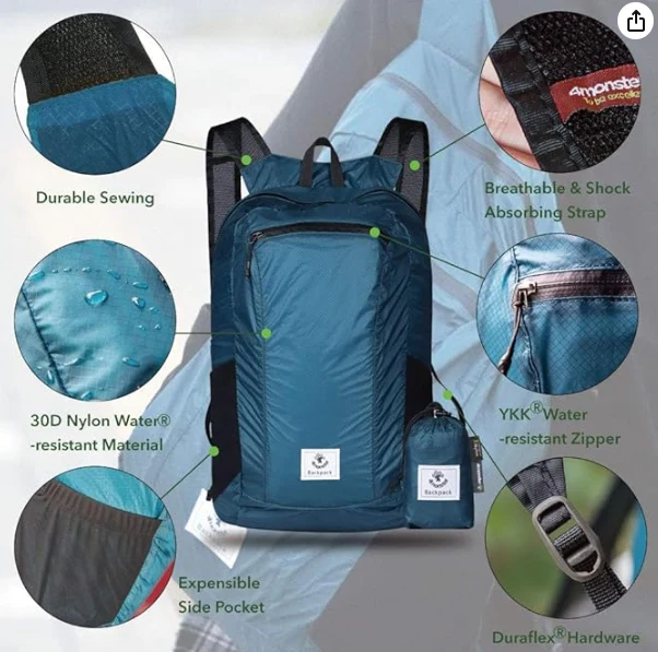 Водоотпорен ранец за пешачење со лесна тежина, овој лесен ден за пешачење е изработен од материјал отпорен на вода и патент. Ефективно спречете ја дождовницата да го навлажнува телефонот или готовина и други предмети во ранецот.